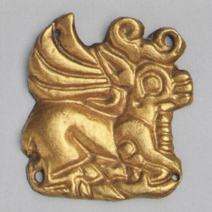 IV-III вв. до н.э. Золото; литьё, чеканка, пайка. 8,2×12,3 см. Сибирская коллекция Петра Первого. Грабительские раскопки первой четверти XVIII в. Инв. №Си 1/6.