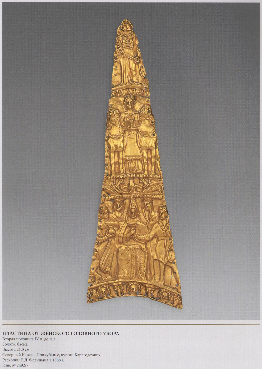 Вторая половина IV в. до н.э. Золото; тиснение, пайка. Длина 45,0 см. Северный Кавказ, Прикубанье, курган Карагодеуашх. Раскопки Е.Д. Фелицына в 1888 г. Инв. №2492/2.