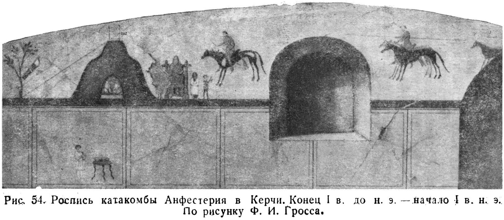 По сторонам от рассмотренных групп помещены сцены терзания оленя и кабана львами. [45] Конкретная символика этих образов, столь частых в искусстве Скифии, равно как и природа этого различия между правой и левой частями композиции, в остальном тождественными, остаются пока неясными и могут быть решены лишь с учётом всего имеющегося материала. Нам в данный момент приходится ограничиться изложенным выше толкованием мотива терзания в целом.