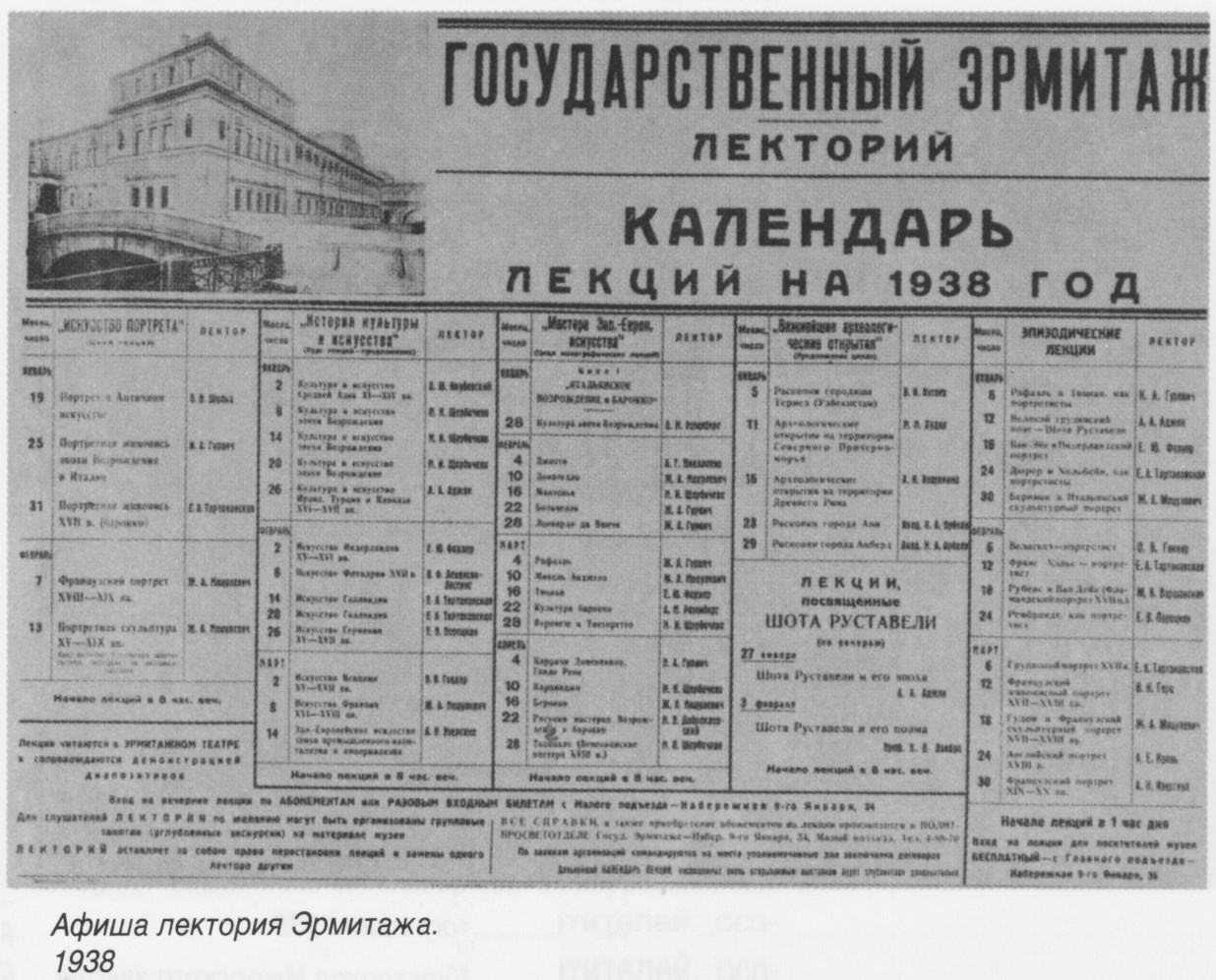 Афиша цикловых экскурсий Эрмитажа. Вторая половина 1950-х гг.