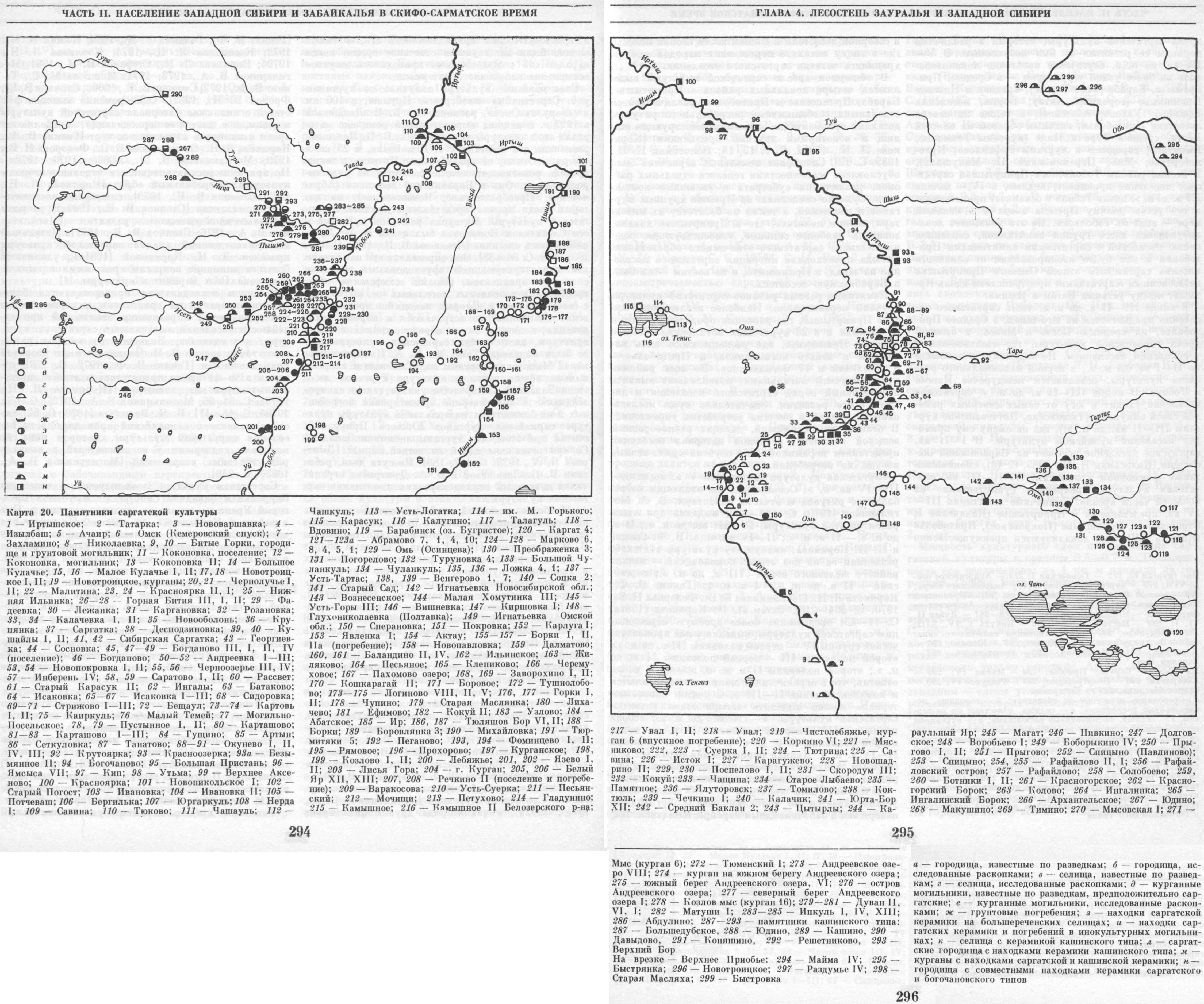^ Карта 20. Памятники саргатской культуры. [c. 294-295, подпись — с. 294-296]