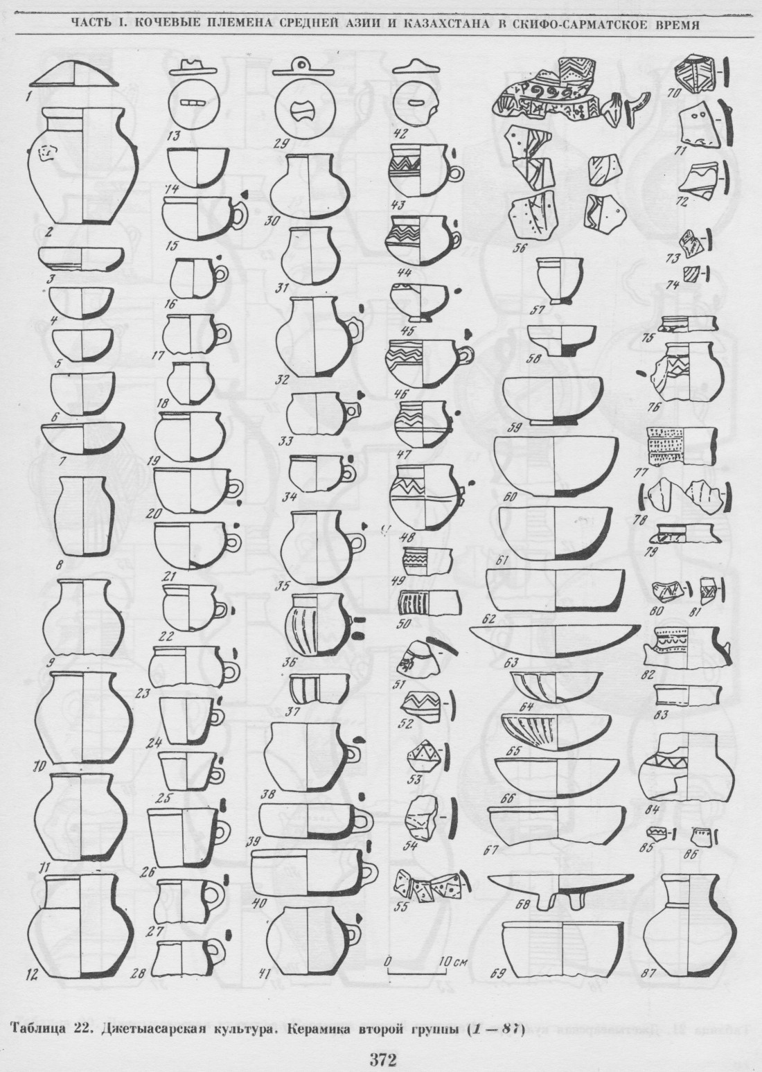 ^ Таблица 22. Джетыасарская культура. Керамика второй группы (1-87).(Открыть Табл. 22 в новом окне)