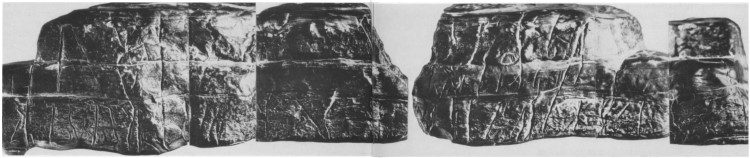 An inscription on a stone (a spread picture), the Aktasta I burial ground, 4th-6th cent. A.D.