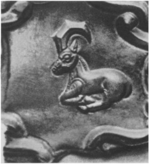 Не менее широко распространён сюжет стоящего оленя, козла и архара с подобранными ногами в так называемой позе «перед прыжком», многие из них украшают различные навершия, найденные в Сибири, [99] в Ордосе (Центральная Азия), [100] в Причерноморье, [101] и относятся к VI-V вв. до н.э. Козлы в позе «перед прыжком» найдены при раскопках на Восточном Памире, [102] в Центральном [103] и Северном [104] Казахстане, и здесь они датируются VI-V вв. до н.э.