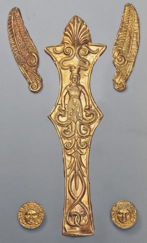 V в. до н.э. Золото; чеканка. Длина 31,5 см. Северное Причерноморье, Крым, Керченский полуостров, курган Куль-Оба. Грабительская находка в 1830 г. Инв. №КО.120.