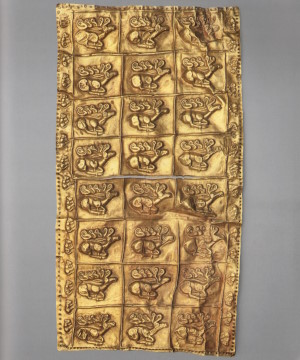 Конец VII в. до н.э. Золото; чеканка, пайка. 19,0×31,1 см. Северо-Западный Кавказ, Закубанье, Костромской (Первый Разменный) курган. Раскопки Н.И. Веселовского у станицы Костромская в 1897 г. Инв. № 2498/1. (Открыть илл. со стр. 64 в новом окне)