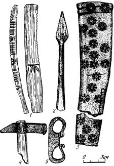 В комплексе орудий из кремня и обсидиана преобладают тонкие ножевидные пластины, много концевых скребков и угловых резцов, имеются жатвенные ножи. Найдены зернотёрки из