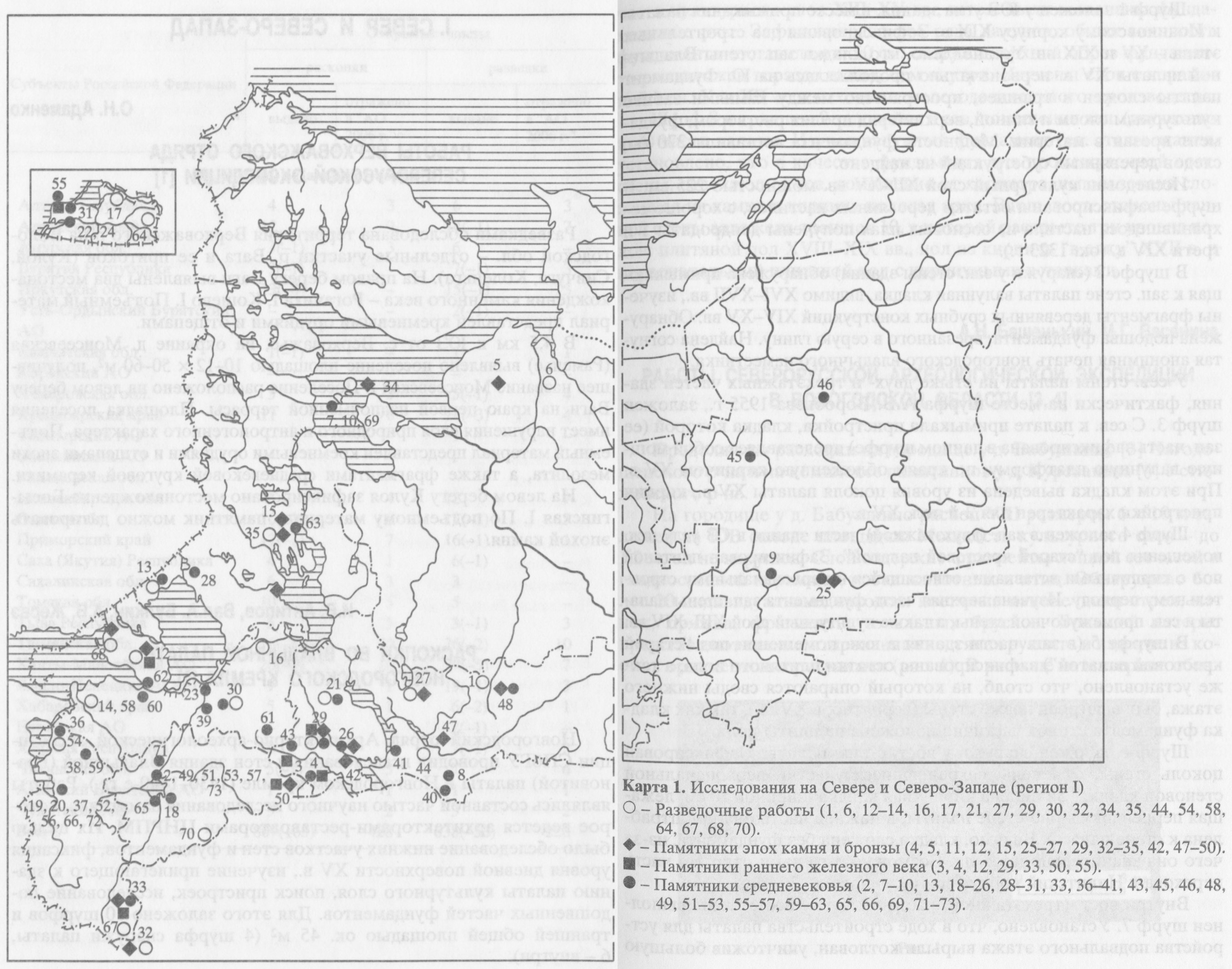 [ Пояснение из предыдущих выпусков АО: ] В квадратных скобках при заголовках статей приводятся отсылки к пунктам на картах. Если к одной статье относится более одного пункта, то отсылки конкретизируются в тексте. Нумерация пунктов на картах следует алфавитному порядку фамилий авторов статей внутри разделов.