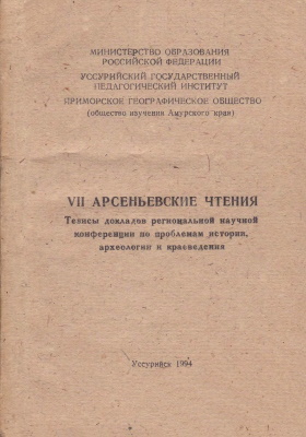 / Тезисы докладов региональной конференции, посвящённой 130-летию со дня рождения В.К. Арсеньева (28-29 августа 2002 года).