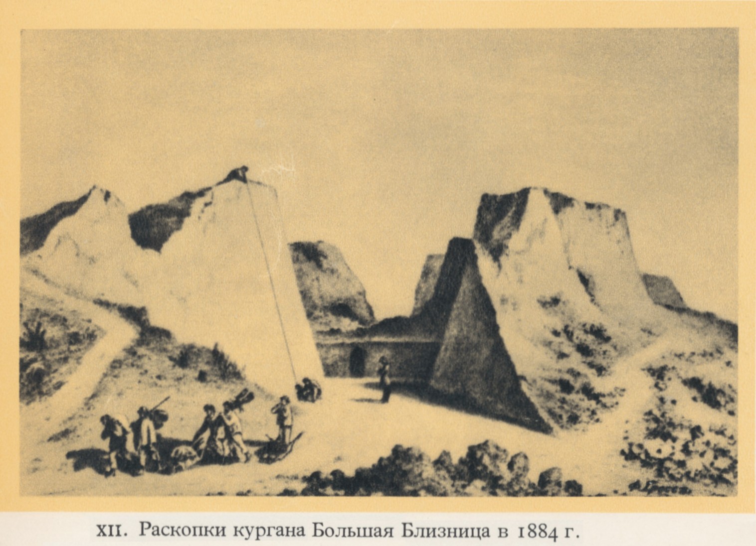 ^ XII. Раскопки кургана Большая Близница в 1884 г.(Открыть Рис. XII в новом окне) |