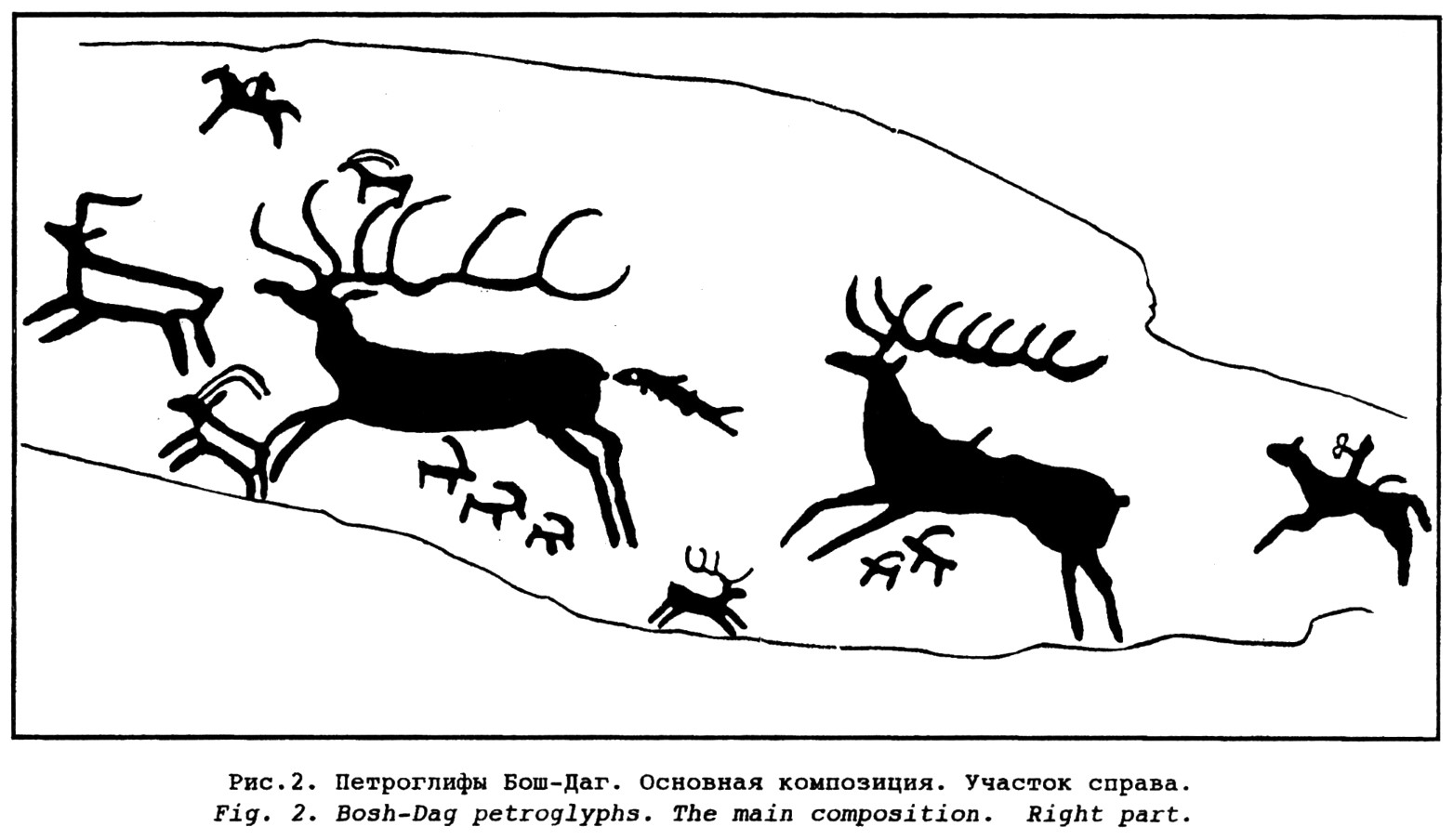 Fig. 2. Bosh-Dag petroglyphs. The main composition. Right part.