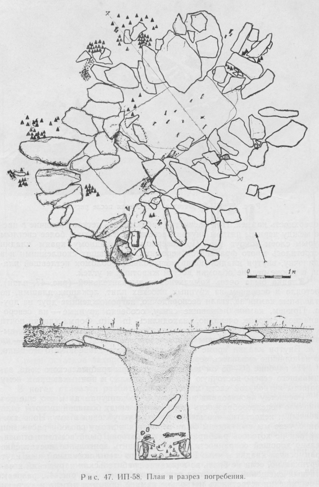 ^ Рис. 47. [стр. 76] ИП-58. План и разрез погребения.