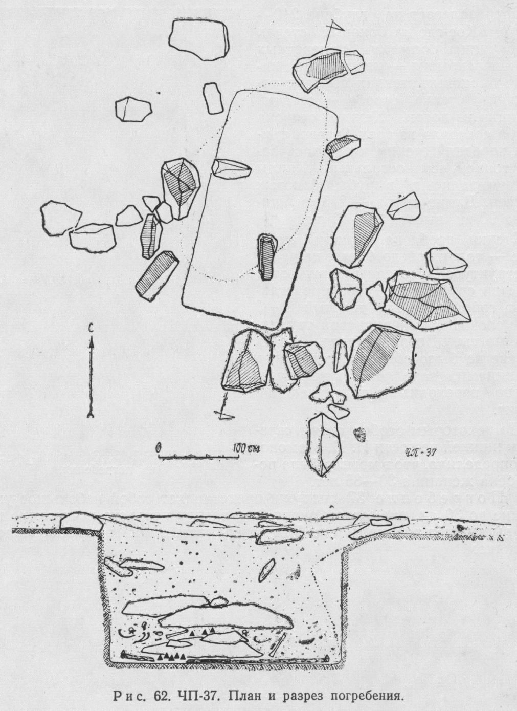 ^ Рис. 98. [стр. 131] ЧП-62. План и разрез погребения.