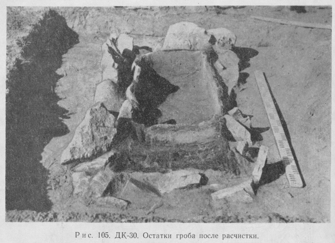 ^ Рис. 105. [стр. 140] ДК-30. Остатки гроба после расчистки.