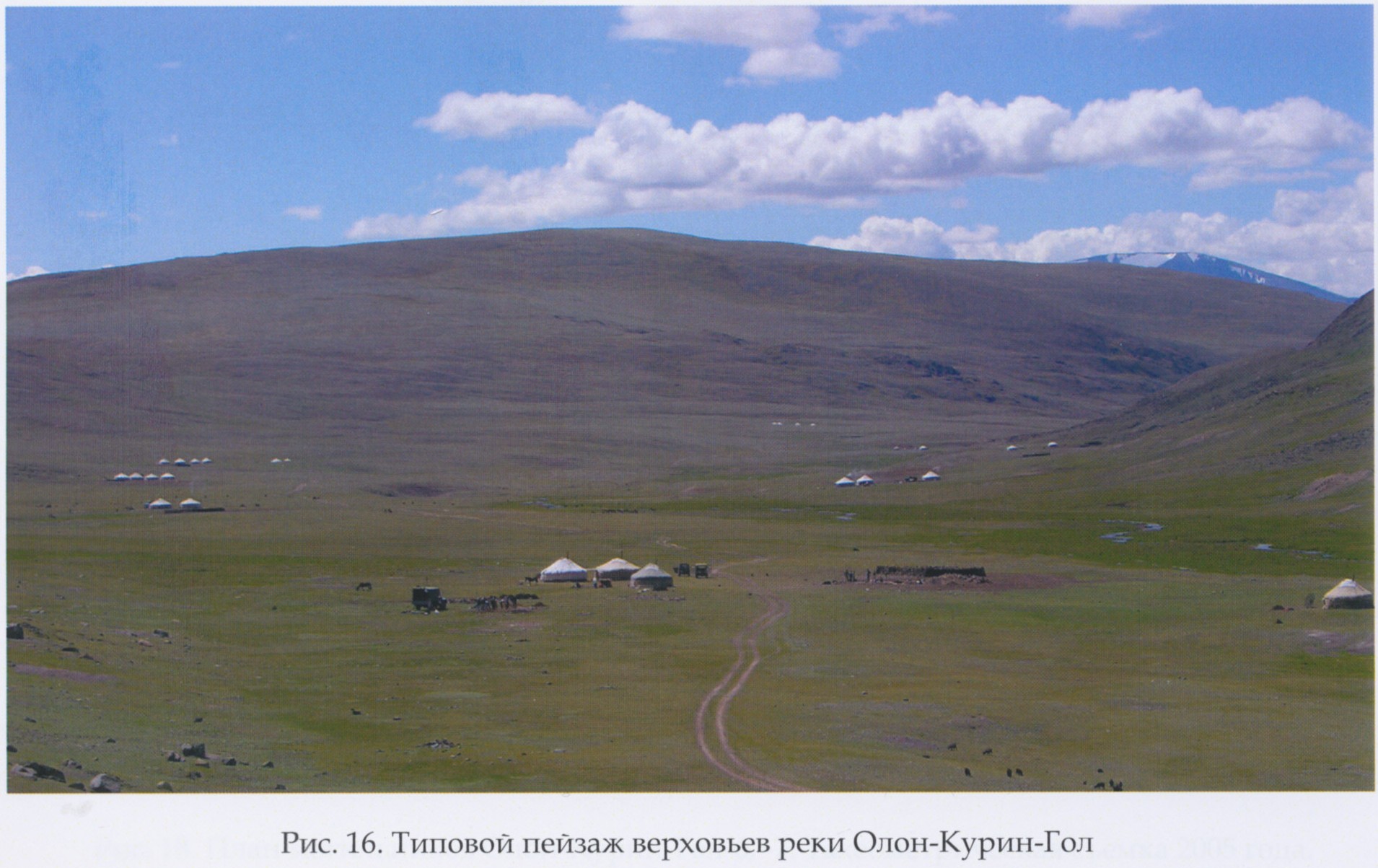 ^ Рис. 16. (стр. 62) Типовой пейзаж верховьев реки Олон-Курин-Гол.