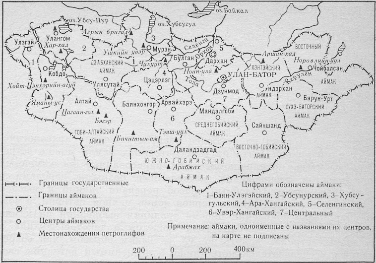 Монголию с полным основанием можно назвать горной страной. Почти вся территория её запада и центра покрыта горными массивами: хребтами Хангая, Монгольского и Гобийского Алтая, отрогами Саян, Богдо-уула и Хэнтэя. Даже гобийская зона, которую за пределами страны порой ошибочно считают беспредельной пустыней, изобилует горами и ущельями. И всюду в горах на подходящих для рисунков гладких поверхностях можно обнаружить выбитые или нарисованные фигуры людей и животных, целые сюжеты. Без преувеличения можно сказать, что Монголия — страна петроглифов.