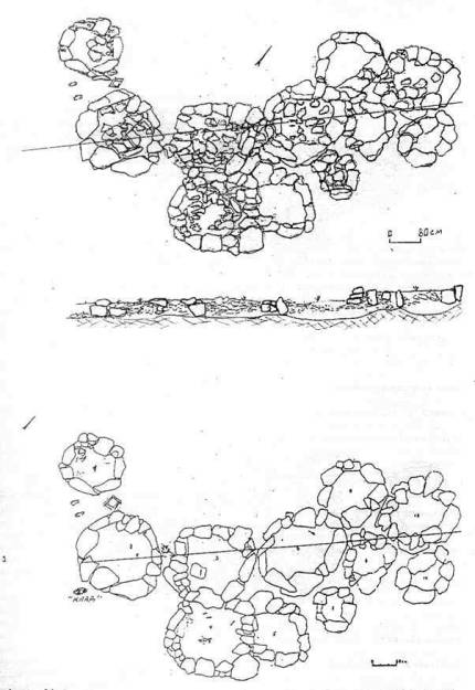 Внутренняя площадка заполнена развалами стенок оград соседних сооружений.