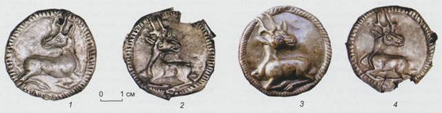 Рис. 4. Серебряные бляхи с изображением единорога. Ноин-Ула, падь Суцзуктэ, кург. 20.(Открыть Рис. 4 в новом окне) |