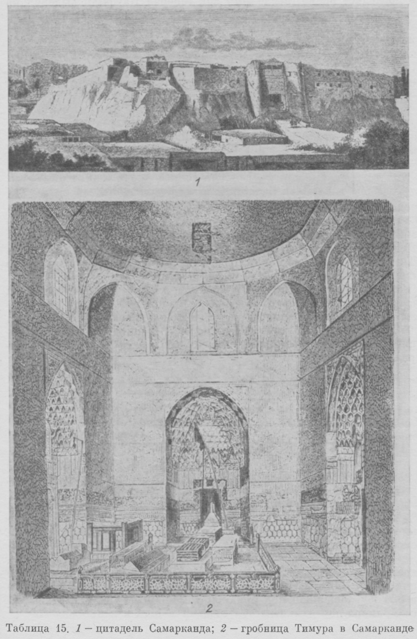 Таблица 15 [стр. 543]. ^ 1 — цитадель Самарканда; 2 — гробница Тимура в Самарканде.