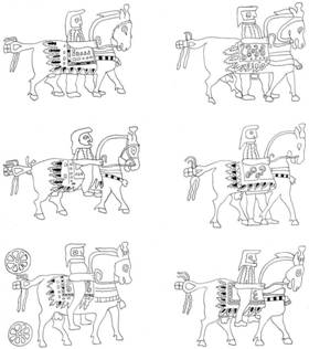 ![]() ^ 34. Фигуры всадников ворсового ковра.