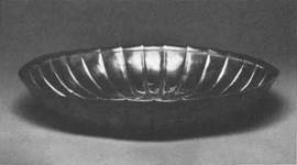 II.35. ^Récipient en argent.Le fond est plat. Sur un peut pied bas, la panse galbée s’évase jusqu’à la lèvre retombante.Dimensions: diamètre du col 20,5 cm; hauteur 9,5 cm; diamètre du fond 10,5 cm; hauteur du pied 0,8 cm.Etat de conservation: très patiné; un fragment de la panse s’est détaché.