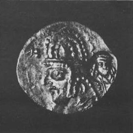 III.47. Ill. 130. ^Monnaie romaine en or.Avers: profil droit de Tibère, coiffé d’une couronne de lauriers. Inscription: César Tibère, fils du divin Auguste. Revers: silhouette féminine drapée, assise de profil droit. La femme tient dans la main gauche une branche, dans la droite un sceptre. Inscription: Maximus Pontifex.