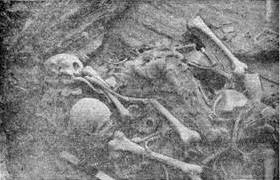 расстоянии 4-5 м от кургана (№2, 3, 5). Могильное пятно также имело подпрямоугольную форму и располагалось, как правило, посередине площади кургана. В заполнении могильной ямы (мелкие колотые плитки без земляных прослоек между ними или серая супесь с вкраплением крупных камней) на различной глубине встречались кусочки дерева, разрозненные кости человека и животных. На дне ям (глубина до 3,8 м) находились деревянные камеры — срубы, сделанные из лиственничных брёвен квадратной или подквадратной формы, ориентированные в пяти случаях сторонами и в одном случае углами по странам света (рис. 1). Погребения, как правило, коллективные (до 6 человек), но взаимное расположение мужских, женских и детских скелетов в срубе, к сожалению, не восстанавливается. О положении и ориентировке погребённых также можно говорить только предположительно (судя по отдельным непотревоженным костям), они лежали на левом боку с подогнутыми ногами, головой на запад (возможно, с небольшими смещениями), что соответствует памятникам этого времени в других районах Тувы. Особенностью урбюнских захоронений являются неоднократно зафиксированные случаи искусственной мумификации трупов. Так, в кургане №5 найдена нога человека, согнутая в колене с остатками шерстяной одежды (рис. 2), в кургане №2 — женская рука (рис. 7). Мумификация руки была произведена путём надреза с внутренней стороны вдоль лучевой кости с последующим заполнением органическими веществами. Эти находки убедительно показывают связь населения Тувы скифского времени с пазырыкским Алтаем, где обычай искусственной мумификации, как известно, был широко распространён.