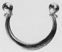 могут быть отнесены предметы, найденные вместе с греческой амфорой второй половины VI века до н.э. в кургане у села Емчиха бывшей Киевской губернии. Отсюда происходит также серебряный браслет с золотыми львиными головками на концах и пара золотых серёг в виде щита со скульптурной львиной головкой в центре. Как считает А.А. Иессен, по характеру работы, форме и изобразительным элементам они относятся не к собственно ионийскому производству, а скорее к малоазийским изделиям лидийского, фригийского или другого происхождения. Пять пар подобных серёг были найдены в Ольвии. [25]