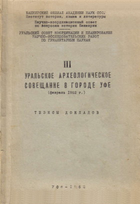 III Уральское археологическое совещание в городе Уфе (февраль 1962 г.). ТД. Уфа: 1962.