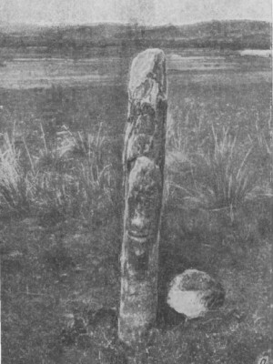^ Табл. 13.Трёхглазая каменная баба в долине р. Бире. Фот. 1905 г.(Открыть Табл. 13 в новом окне)