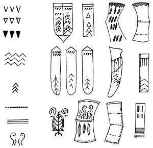 Ташеба, склеп 1: рисунки с двух сторон планок 3-5.
