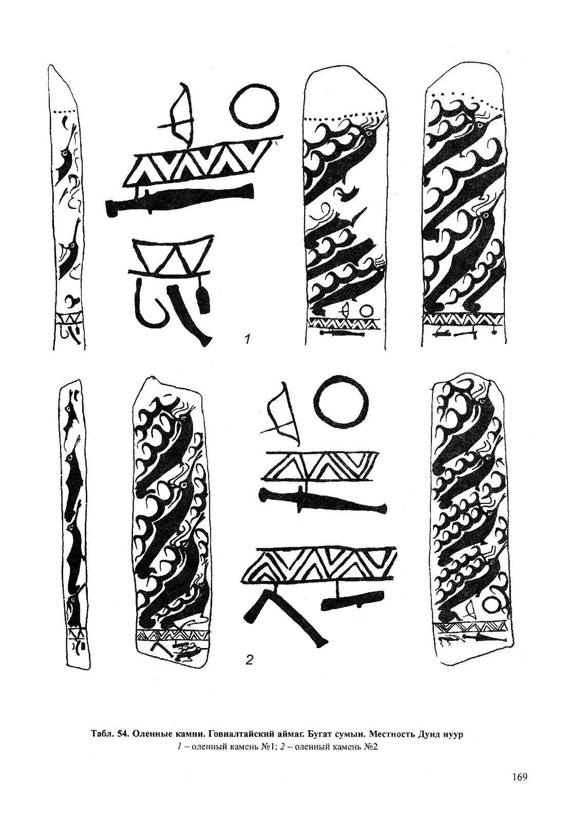^ Табл. 51. (С. 166) Оленный камень №2. Булганский аймаг. Орхон сумын. Сумынный центр Мандал.(Открыть Табл. 51 в новом окне) |