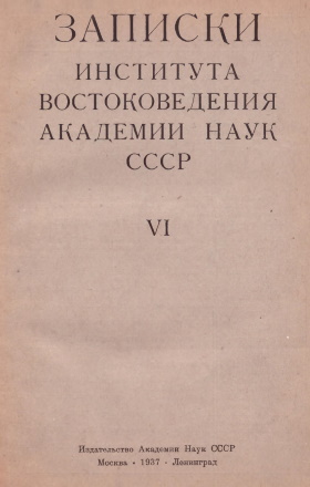 Записки ИВ АН СССР. Том VI. М.-Л.: 1937. 176 с.
