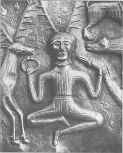 Цернунос — покровитель животных (деталь котла из Гундеструпа).Исторический музей. Копенгаген. |